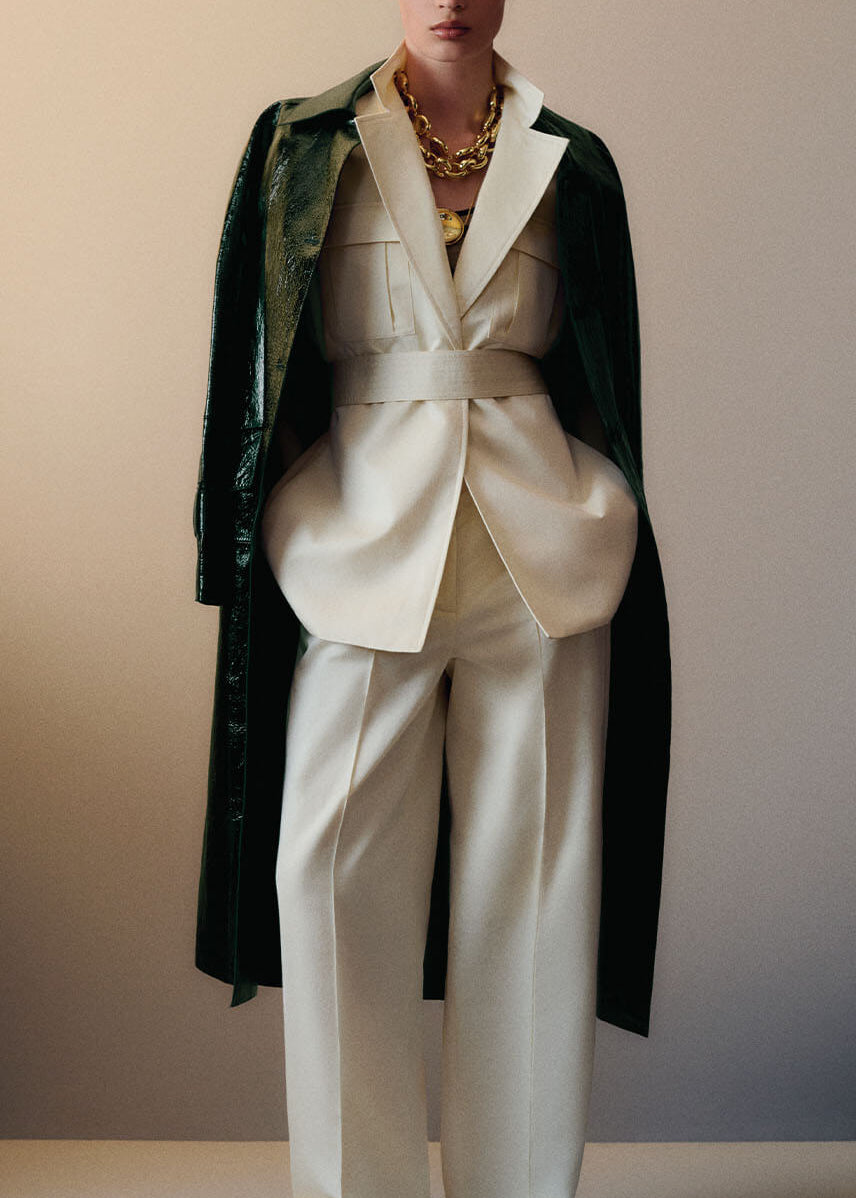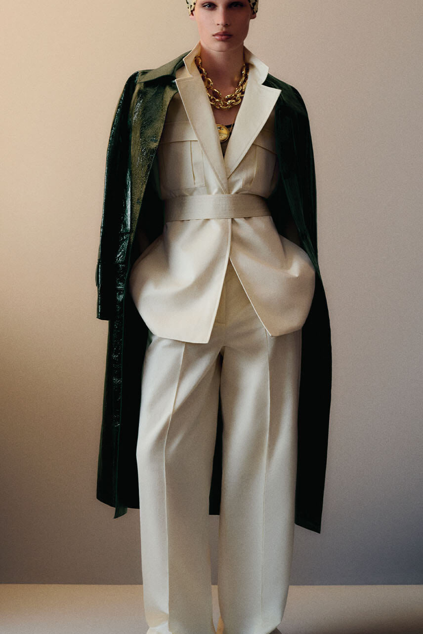 Relaxed pieces – body-skimming blazers, column-leg trousers, and loose-cut knitwear – bring a renewed sense of ease.
