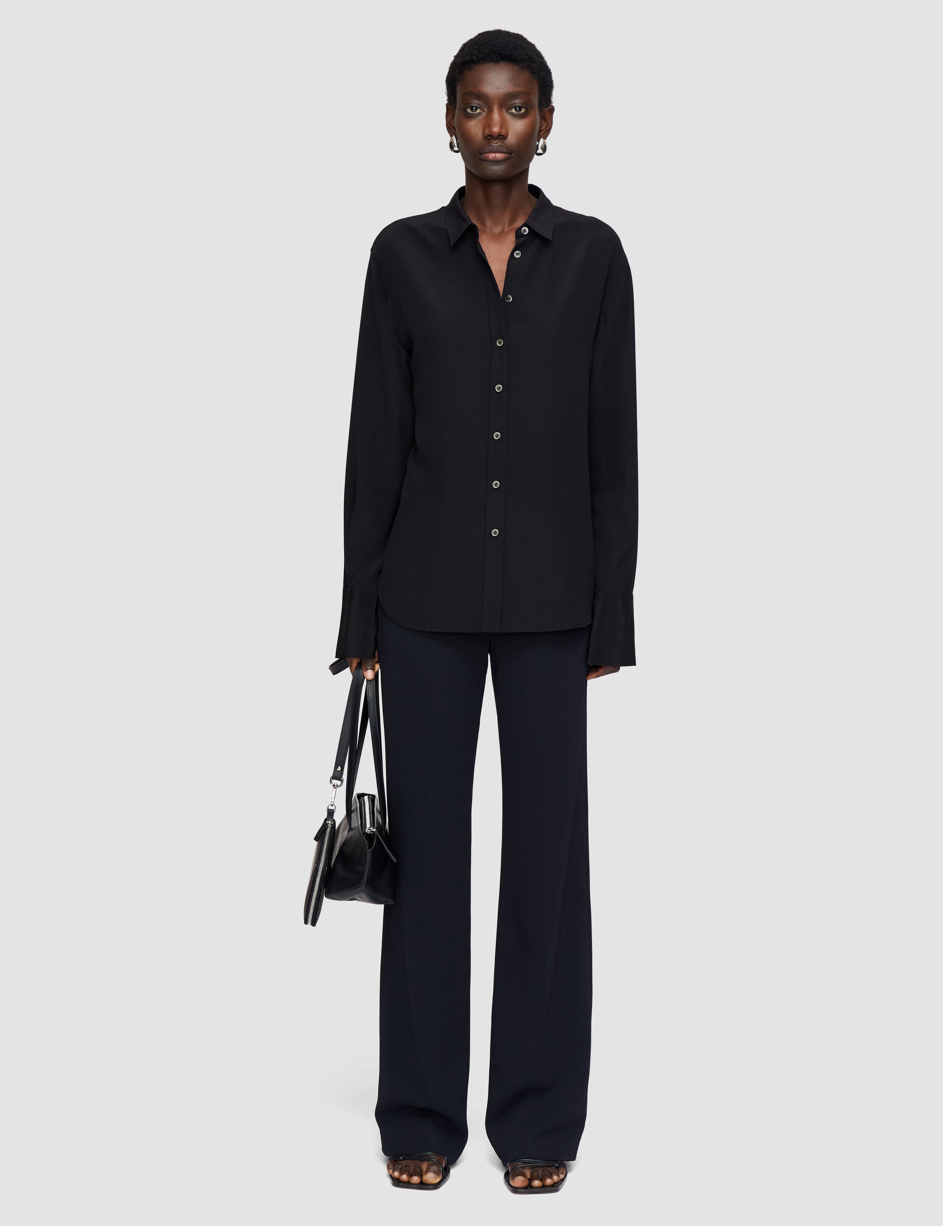The Foundations Collection is a permanent destination for JOSEPH’s carefully curated selection of essential wardrobe pieces. Discover expertly tailored trousers and suit jackets, luxurious double face wool coats, crisp cotton shirts and silk blouses, and lightweight knitwear for layering. Sophisticated basics in black, navy and ivory that form the foundation of every wardrobe.