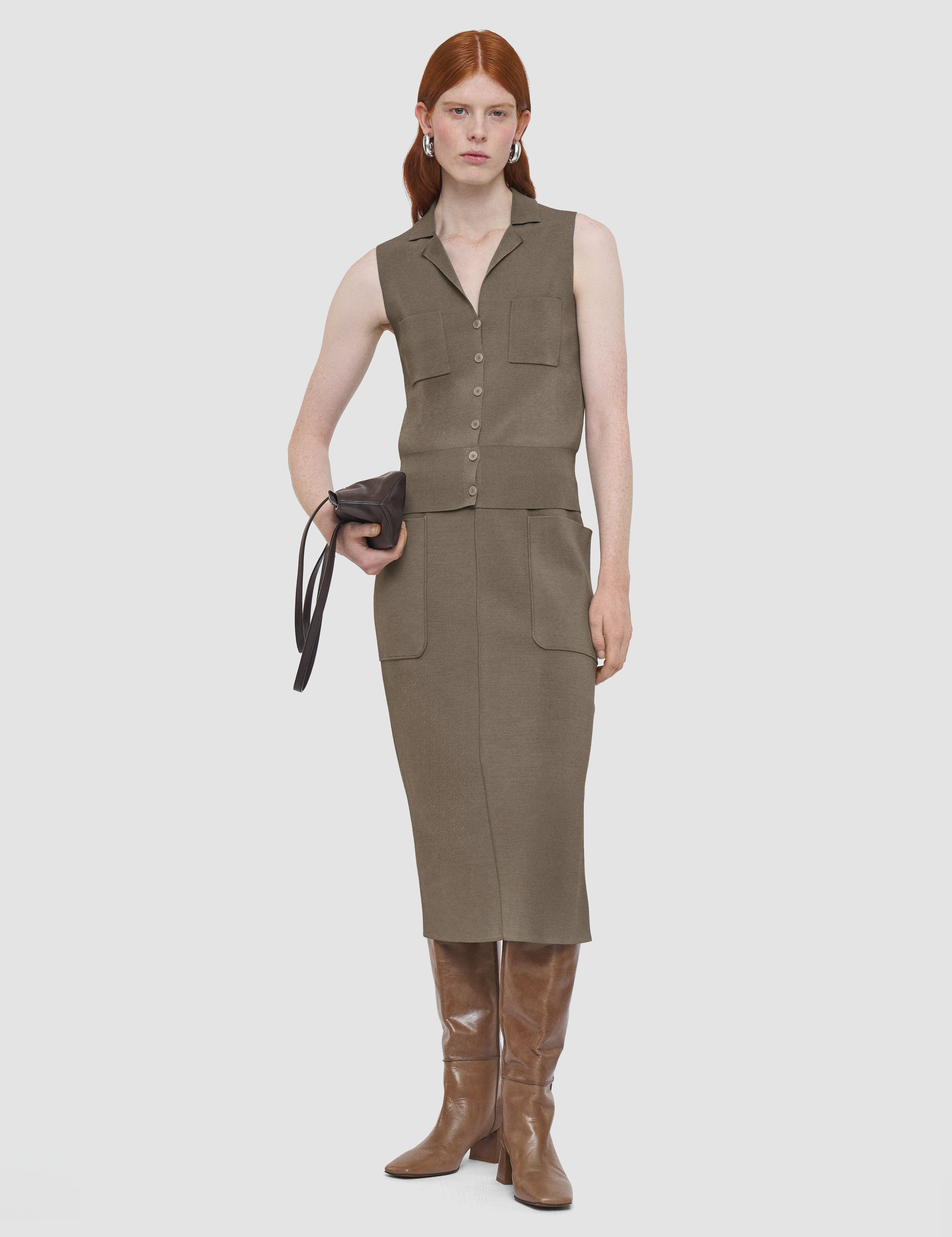 Explore JOSEPH's luxury knitwear collection. Featuring an array of designer knitwear styles, including cashmere jumpers, wool cardigans, and versatile high neck jumpers. Discover our classic V neck jumpers and relaxed crew neck options, ideal for layering and everyday wear. Elevate your wardrobe with knitted dresses and skirts, designed for versatility and effortless style. Each piece showcases JOSEPH's commitment to quality and attention to detail.