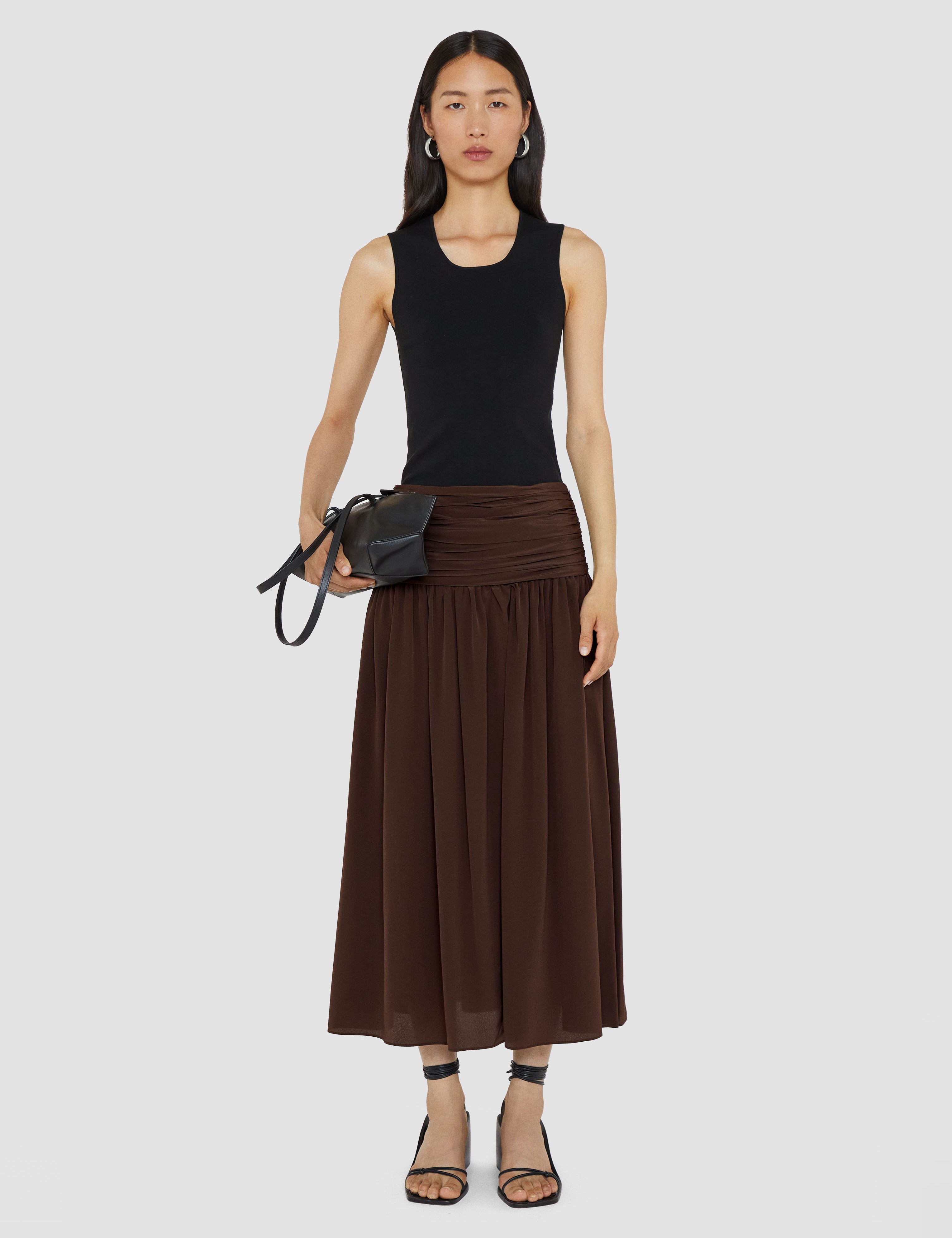 Discover JOSEPH's collection of designer skirts. Crafted from luxury fabrics, seasonal collections include leather skirts, silk midi skirts and knitted skirts. Indulge in cosy cashmere skirts and merino wool skirts, or elegant pleated skirts ideal for everyday or formal dressing. Whether opting for sleek leather skirts or flowing silk skirts, each style offers versatility. Pair all skirts with coordinating blouses, seasonal knitwear, or a statement coat.