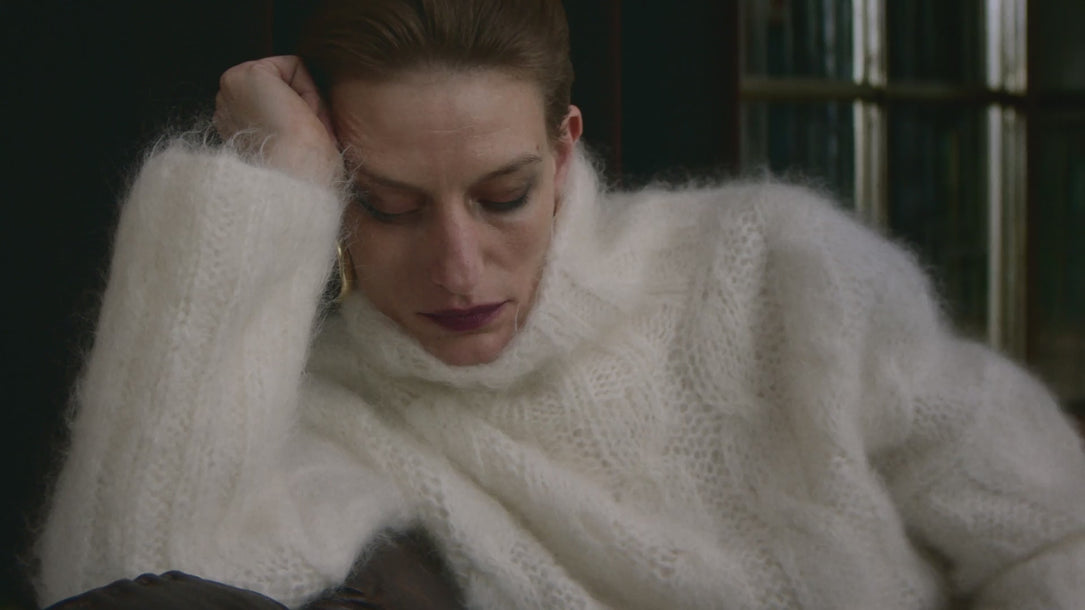 Continuing the enveloping, luxurious feel, new cocoon-shaped outerwear crafted from wool and Donegal tweed appears alongside timeless knitwear in lavishly cosy yarns, like hand-made mohair cable, cashmere fisherman rib and brushed alpaca.