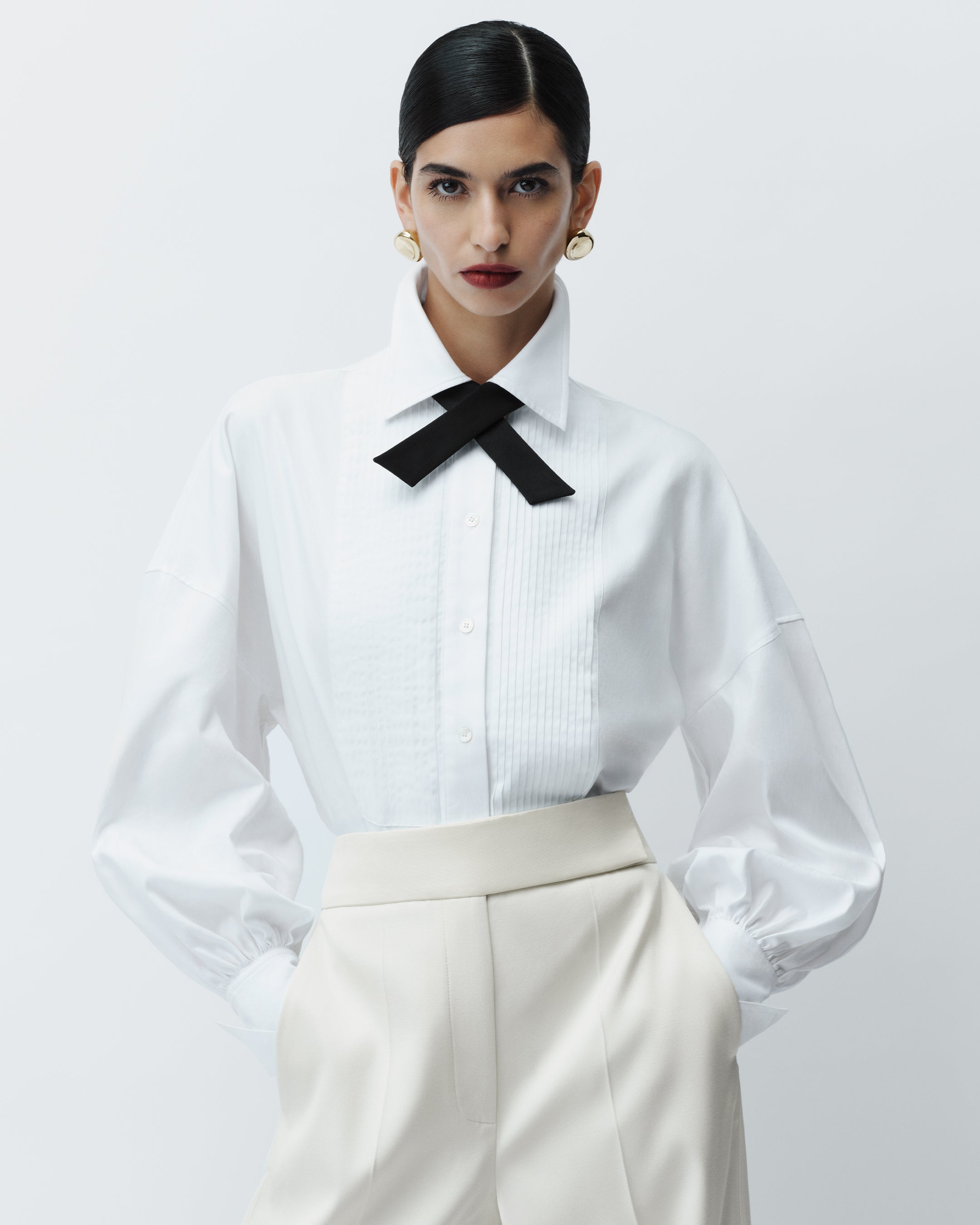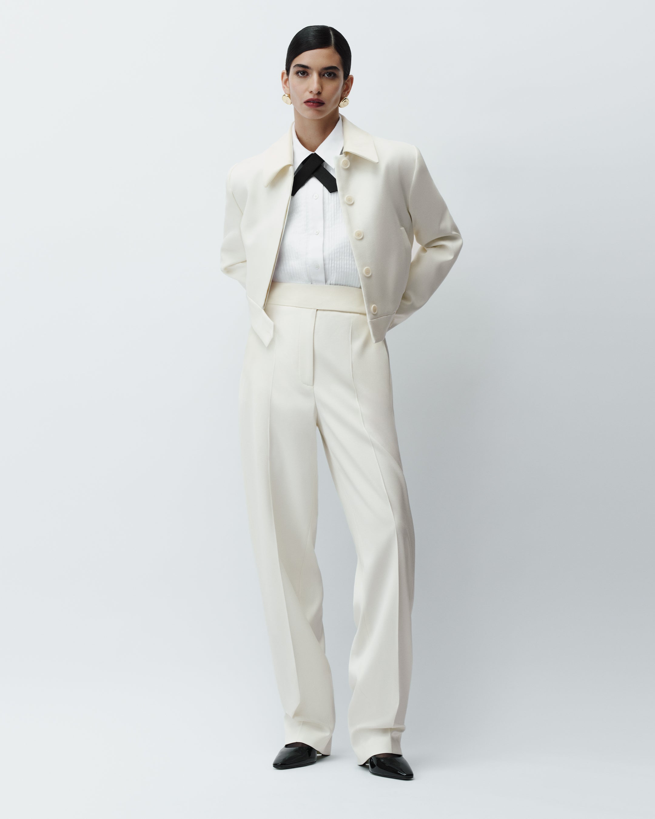 Abbe Tailored Crepe Jacket, Ferrus Tuxedo Cotton Shirt, Aix Tailored Crepe Trousers