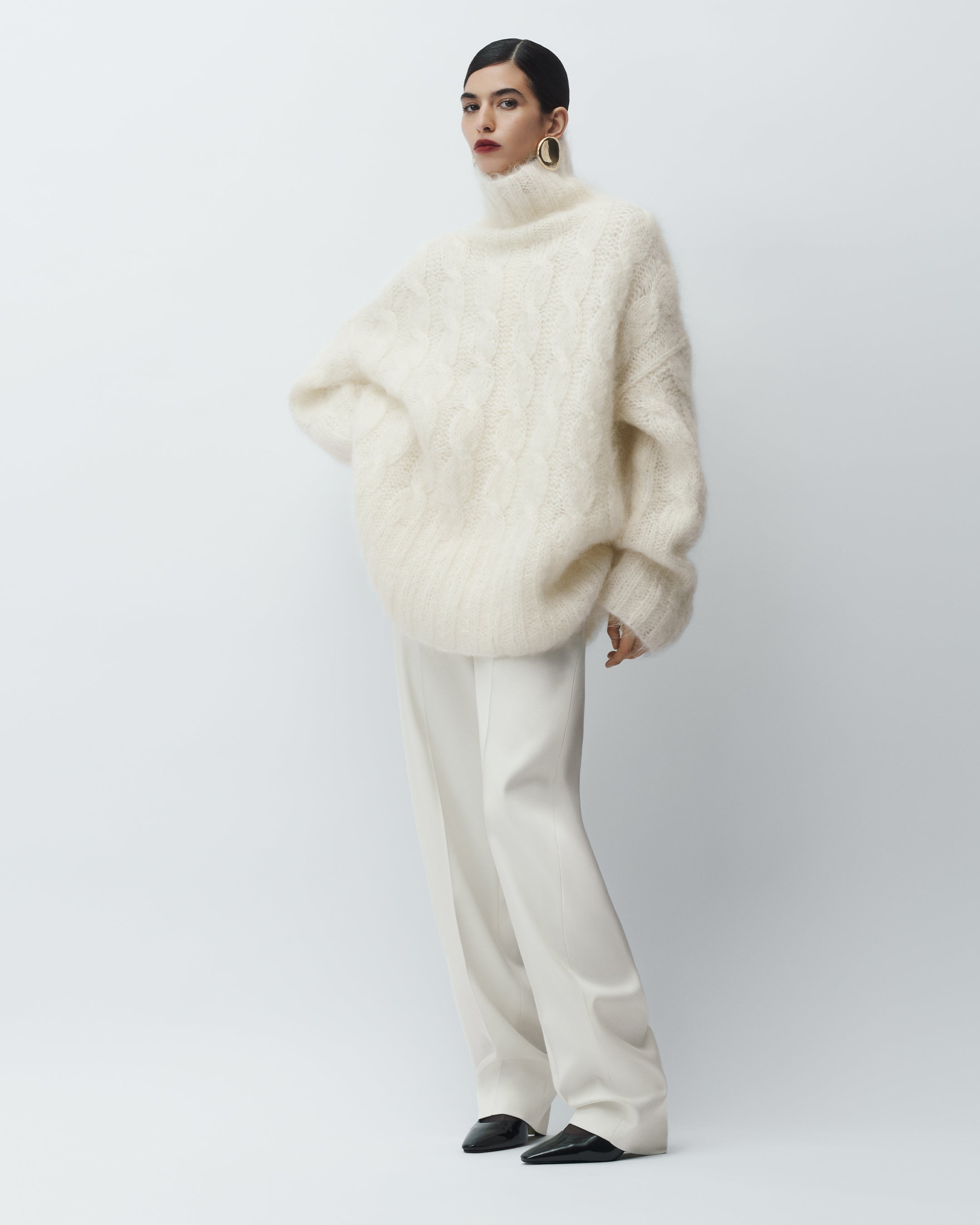 Fortin Cable Mohair Jumper, Aix Tailored Crepe Trousers
