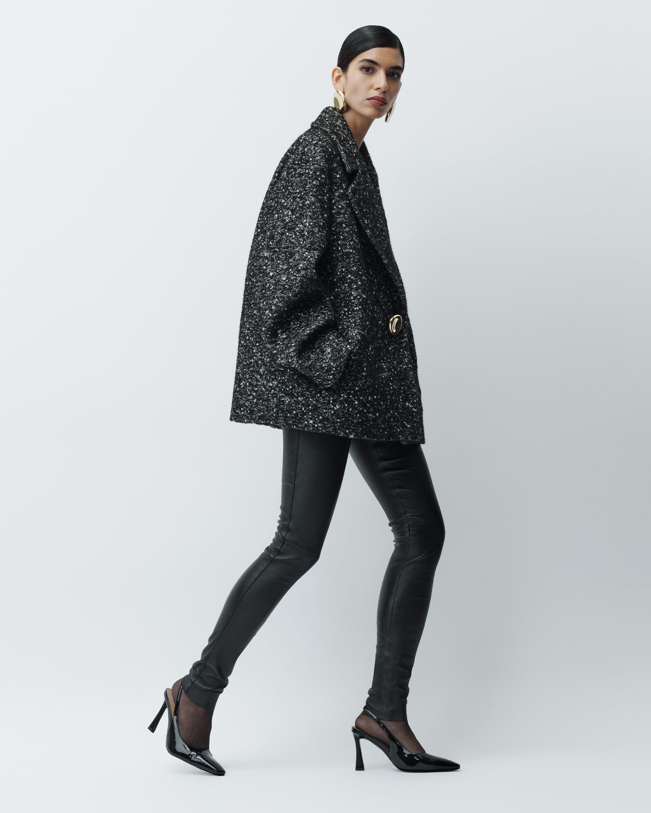 Agar Textured Donegal Wool Coat, Leather Stretch Leggings