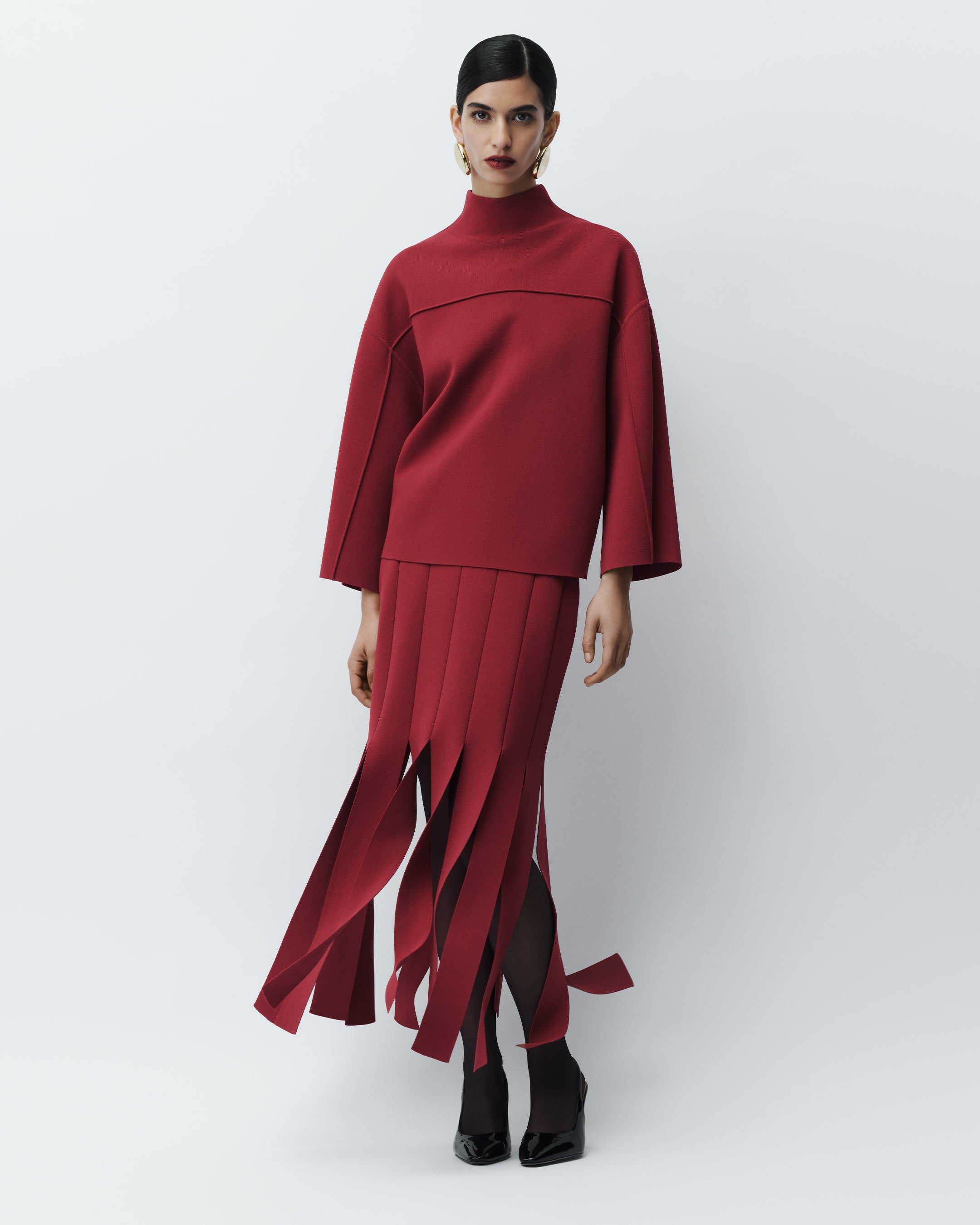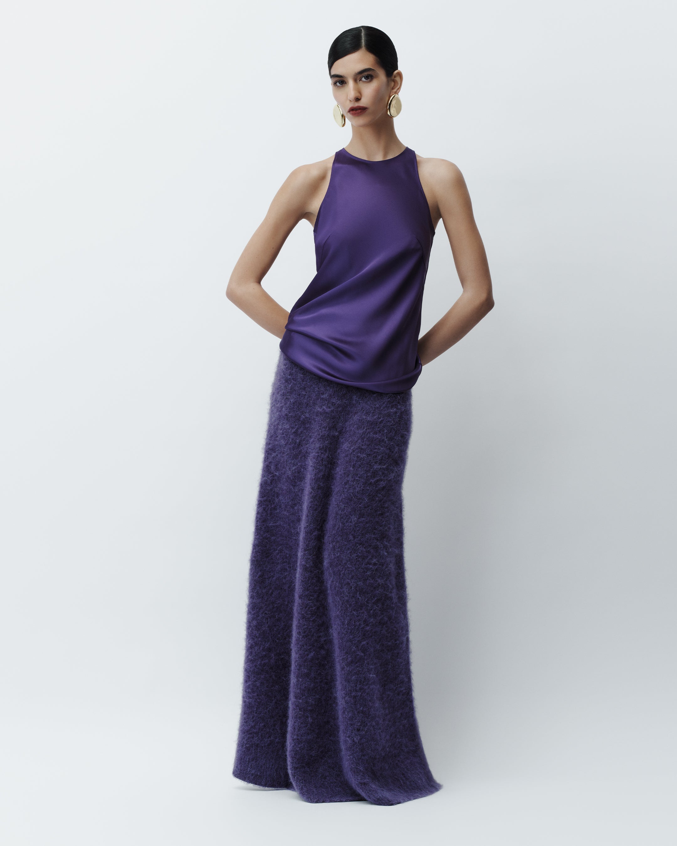 Ritz Double Satin Top, Mairie Brushed Alpaca Skirt