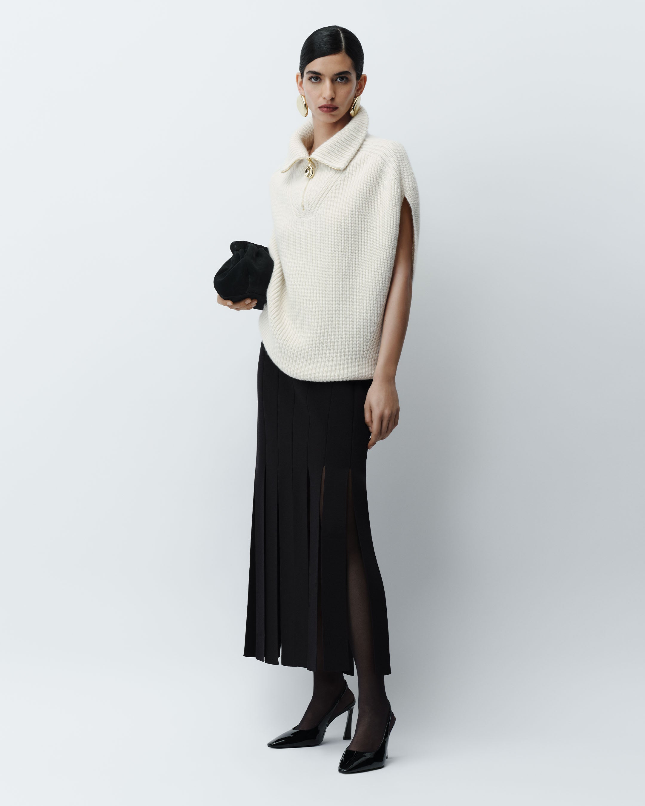 Raffet Fisherman Rib Cashmere Vest, Lagny Compact Milano Skirt