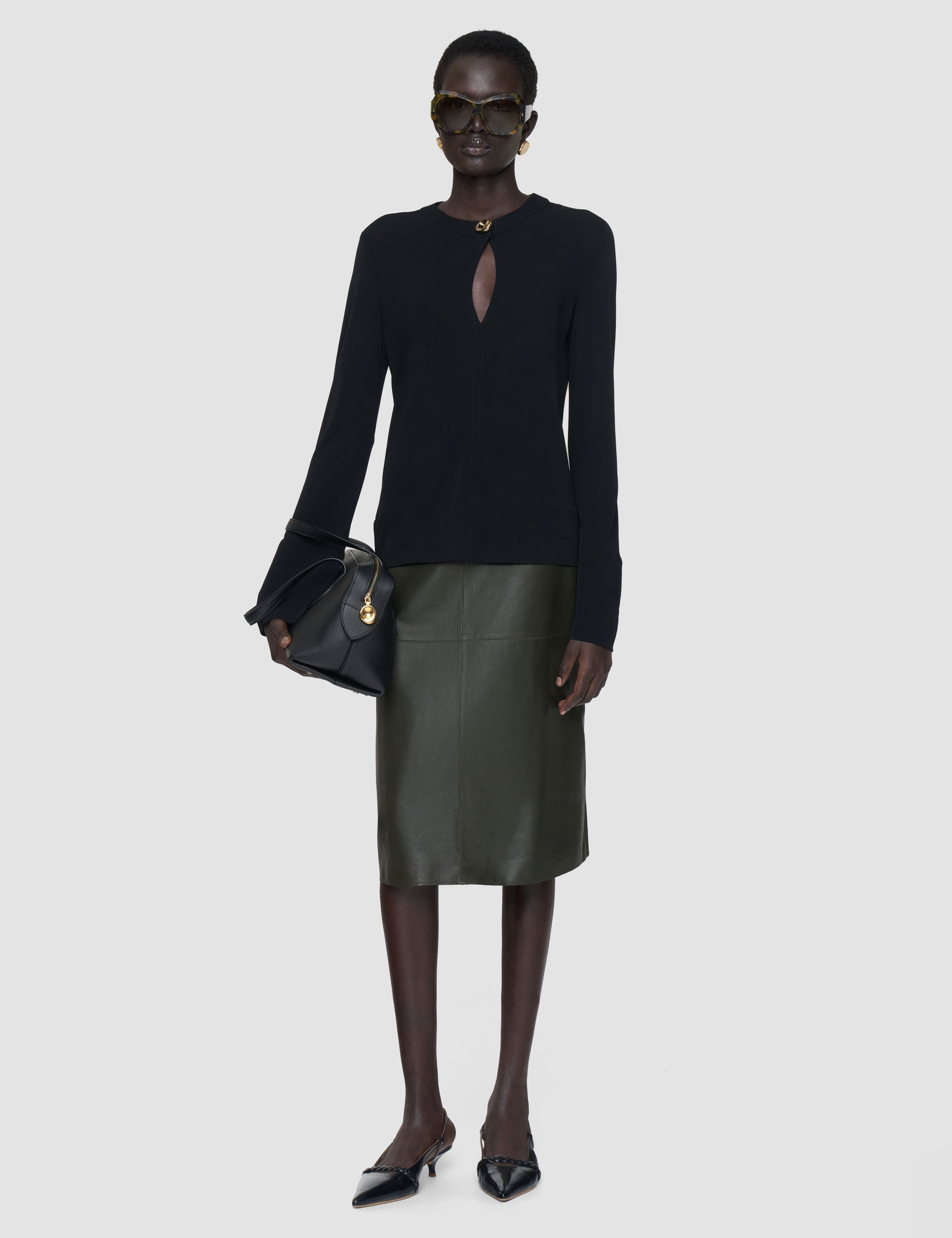 Explore the JOSEPH’s collection of timeless pieces in leather and suede this season. Discover leather jackets, tailored leather trousers, and leather skirts crafted from premium fabrics with a focus on quality and fit. Each piece is designed to bring structure and ease to everyday dressing, embodying the modern sophistication at the heart of JOSEPH. Our leather collection offers classic and contemporary silhouettes in rich tones of black, brown, navy, and cream. Wear an oversized leather jacket or leather trench coat in the city, layered over knitwear for an effortless look. Pair a black leather skirt or leather leggings with a crisp shirt or leather blazer for office dressing or an evening dinner date. For cooler days, leather coats and jackets and knee high leather boots lend warmth and refinement to weekend looks. The edit also includes suede jackets, suede skirts, and suede boots including the brown suede jacket and black suede boots, perfect for transitional days or a relaxed countryside escape. Each piece is crafted to last, softening over time while maintaining its distinctive shape and character. Complete your wardrobe with JOSEPH’s silk collection, shearling pieces, and cashmere essentials.