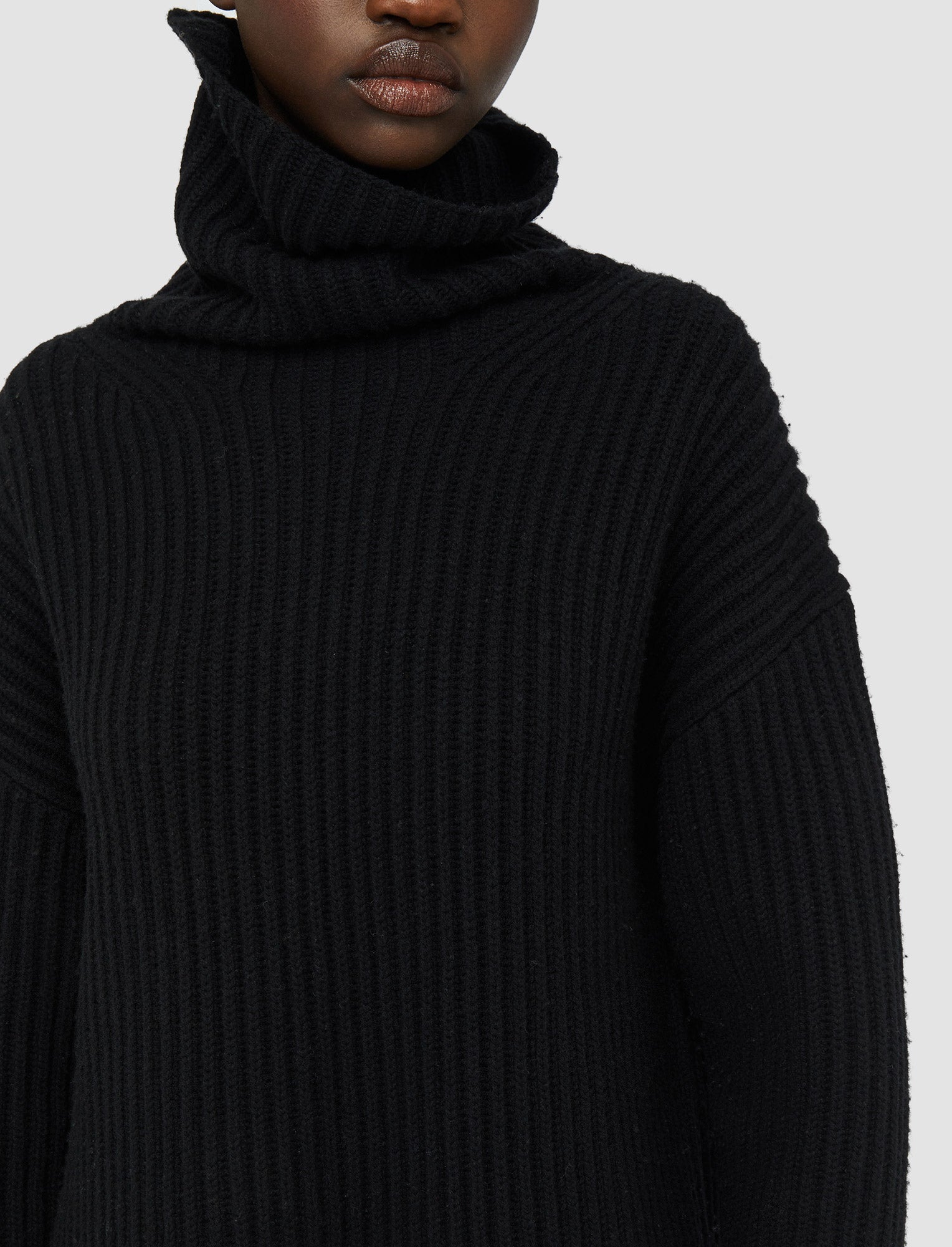 Part of the permanent Foundations Collection, the Cardigan Stitch High Neck Jumper is a relaxed fit, oversized knit jumper, crafted from a fine merino wool. This heavy weight knit features dropped shoulders and is finished in a chunky cardigan stitch, with needlework detailing at the collar and shoulders.