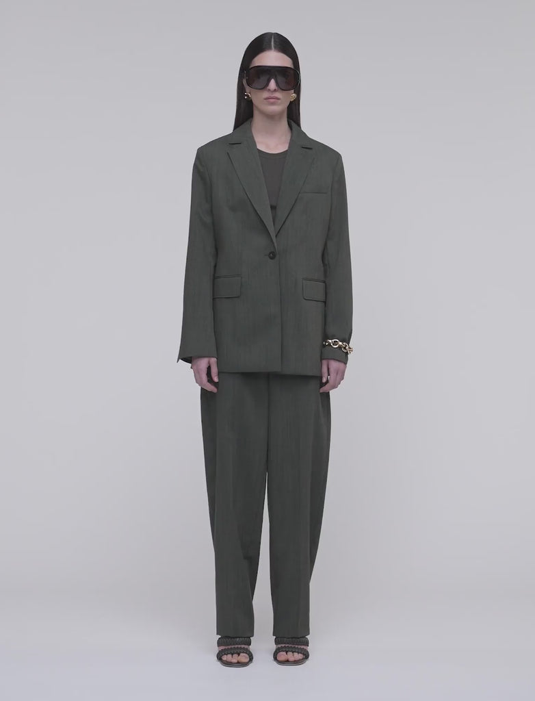 The Maati Light Wool Jacket is a relaxed-fit, single-breasted piece crafted from fine virgin wool. This lightweight suit jacket combines sharp tailoring with effortless wearability, featuring shoulder padding and a buttoned back belt to add definition and create a flattering silhouette.