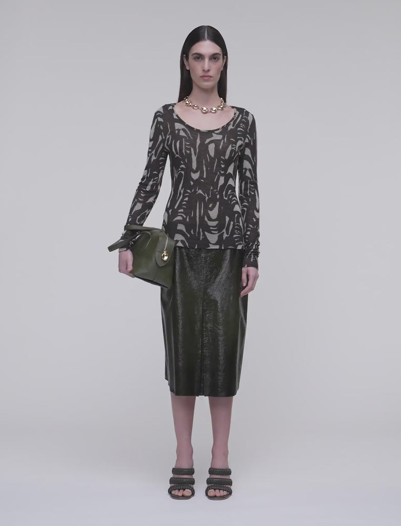 The Villa Cashair Jacquard Top is a slim fit, long-sleeve style, crafted from cashmere. Lightweight and finely made, it’s knitted using a double-layer jacquard technique. It features a ribbon pattern designed exclusively for JOSEPH.
