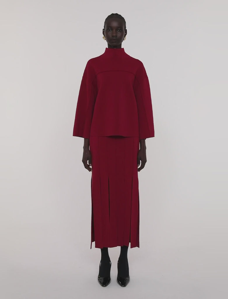 Le Haut à col montant en jersey compact Milano est un style à coupe décontractée, fabriqué à partir d'un mélange de viscose compact qui offre élasticité, structure et confort tout au long de la journée. Coupé avec des manches kimono, il crée une silhouette sculpturale aux lignes épurées.