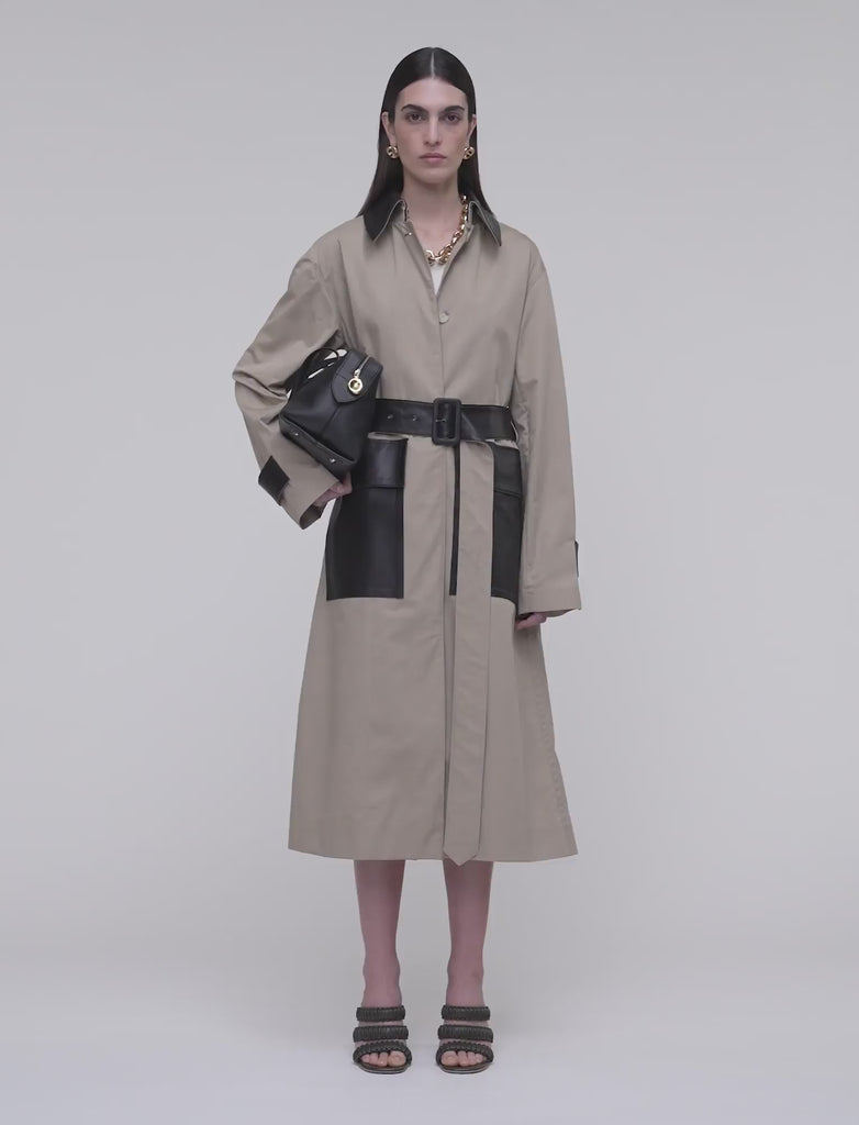 Le Trench-coat Zaman en coton et cuir est un style à coupe décontractée, fabriqué en coton durable pour une superposition sans effort et de transition. Des poches en cuir lisse, un col et une ceinture offrent un contraste raffiné. Une interprétation moderne d'un vêtement d'extérieur intemporel, il équilibre la fonctionnalité quotidienne avec un design sophistiqué.