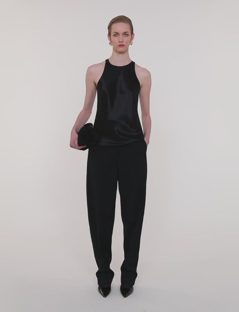 Ritz Double Satin トップは、ゆったりとしたフィット感のタンクトップで、光沢がありシルキーな手触りで知られる責任を持って調達されたacetate混紡素材で作られています。この手間いらずのクリーンカットスタイルは、特別な場面の装い、レイヤリング、または単独での着用に最適です。