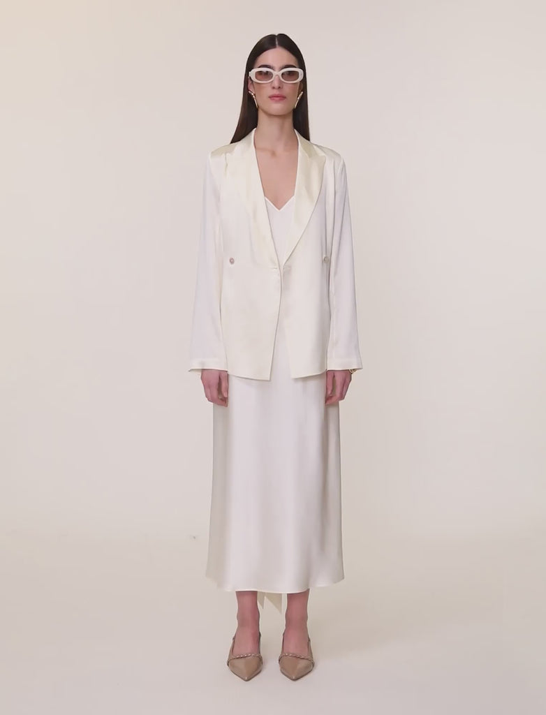 The Clea Silk Satin Dress is a bias cut slip dress, fitting slightly slimmer across the top half the body and falls loosely from the hips. Crafted from a lustrous silk with an ultra-smooth hand feel, this dress offers a clean, fluid look.