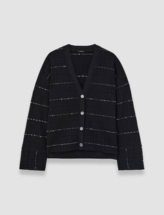 The Fragmented Stripes Dress is a fit to flare dress, crafted from a viscose blend. This elegant piece features a contrasting dotted, stripe pattern. Its compact, ribbed knit design provides a flattering weight and drape.