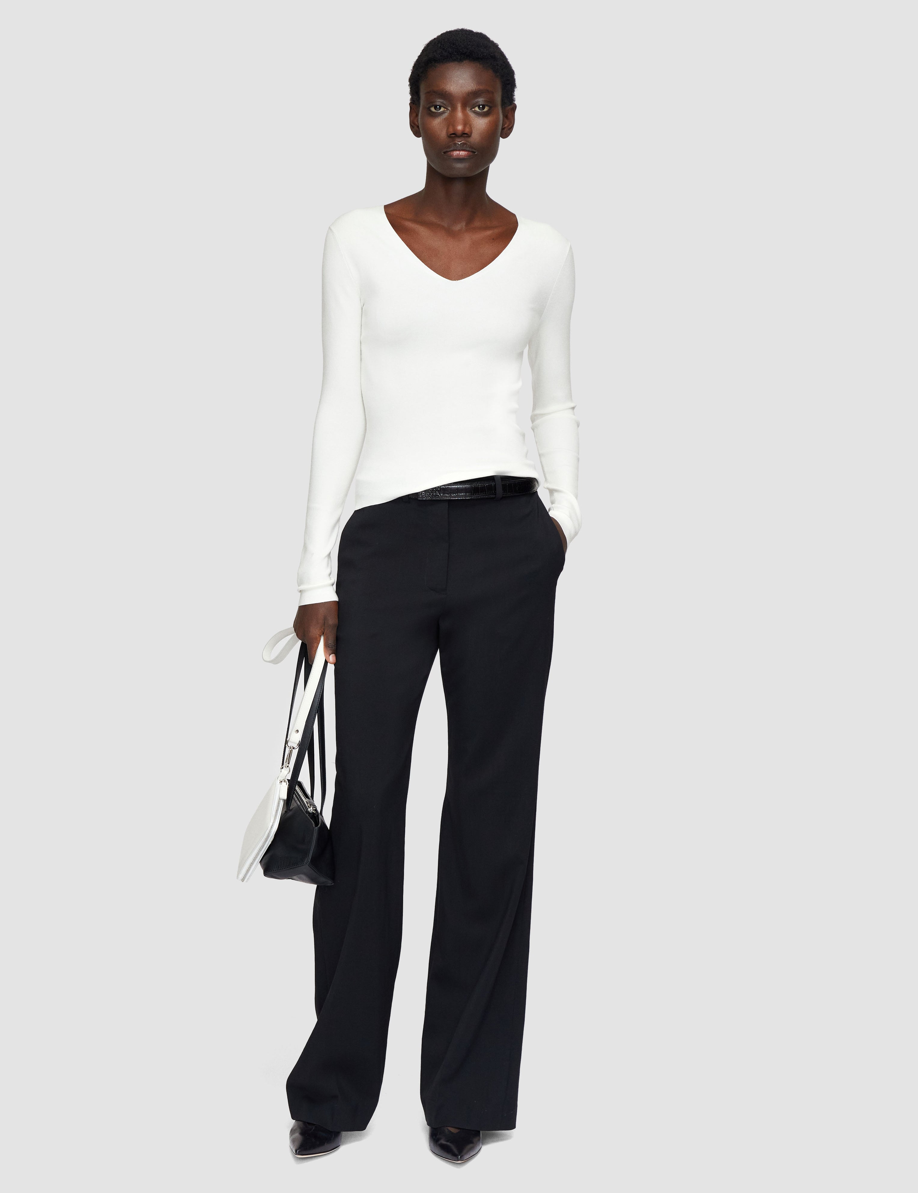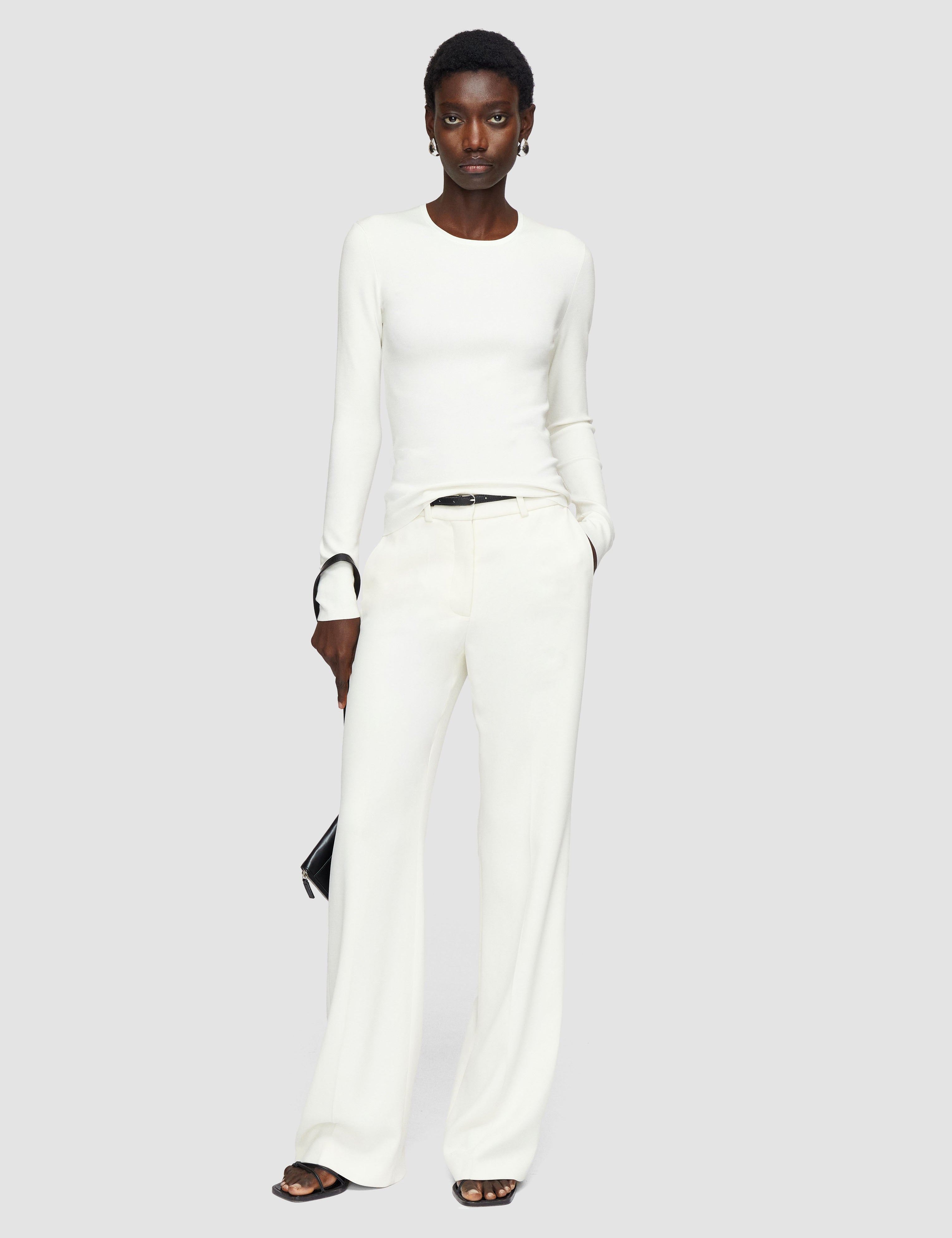 The Foundations Collection is a permanent destination for JOSEPH’s carefully curated selection of essential wardrobe pieces. Discover expertly tailored trousers and suit jackets, luxurious double face wool coats, crisp cotton shirts and silk blouses, and lightweight knitwear for layering. Sophisticated basics in black, navy and ivory that form the foundation of every wardrobe.